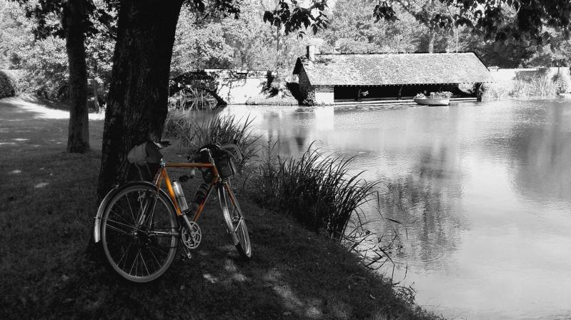 Vendredi 24 août 2018 : j'effectue mon dodécaudax mensuel (minimum 200 km) en compagnie de 3 autres R.C. Anjou, également "randonneurs France". Je passe une agréable journée et je suis presqu'au niveau de mes camarades. Nous voici au bord de l'étang de Viorreau à Joué sur Erdre (Loire-Atlantique) au 86 ème kilomètre :