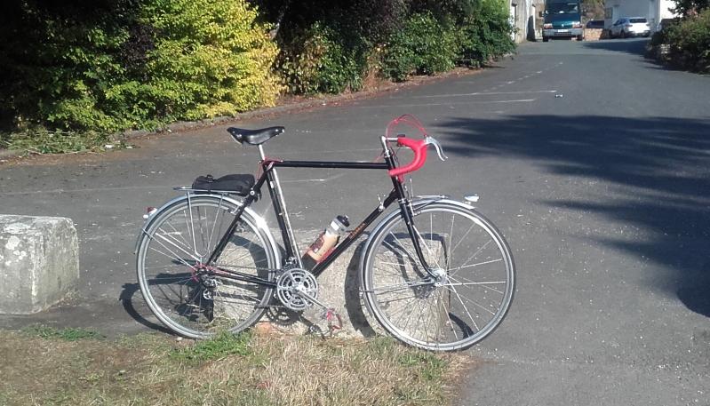 Mercredi 24 juillet 2019 : hier j'ai nettoyé la randonneuse CARRARA du début des années 50, j'ai monté une paire de pneus Grandbois en coton et ce matin elle est allée prendre l'air de bonne heure avant que la canicule n'arrive :