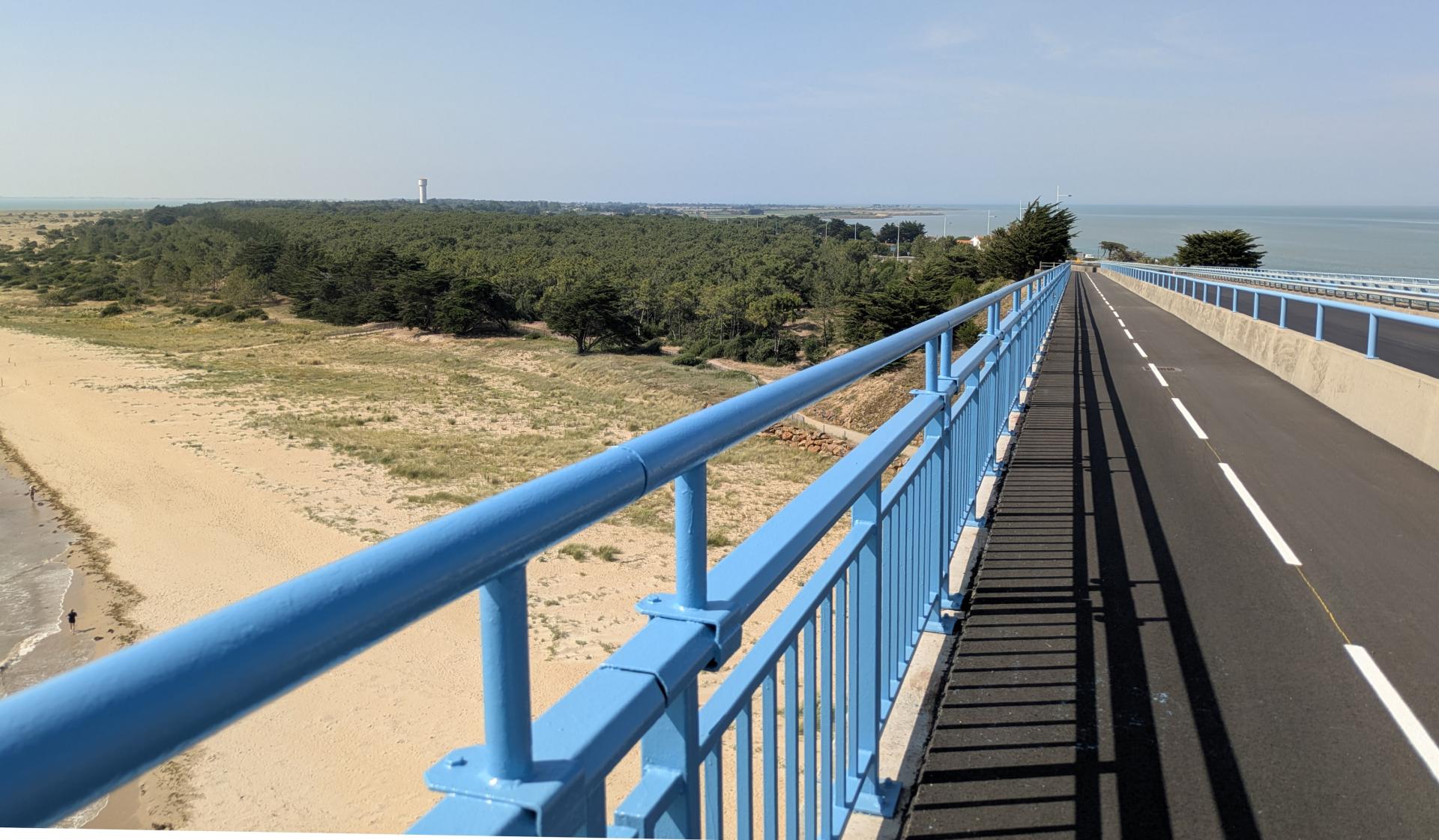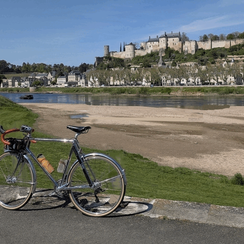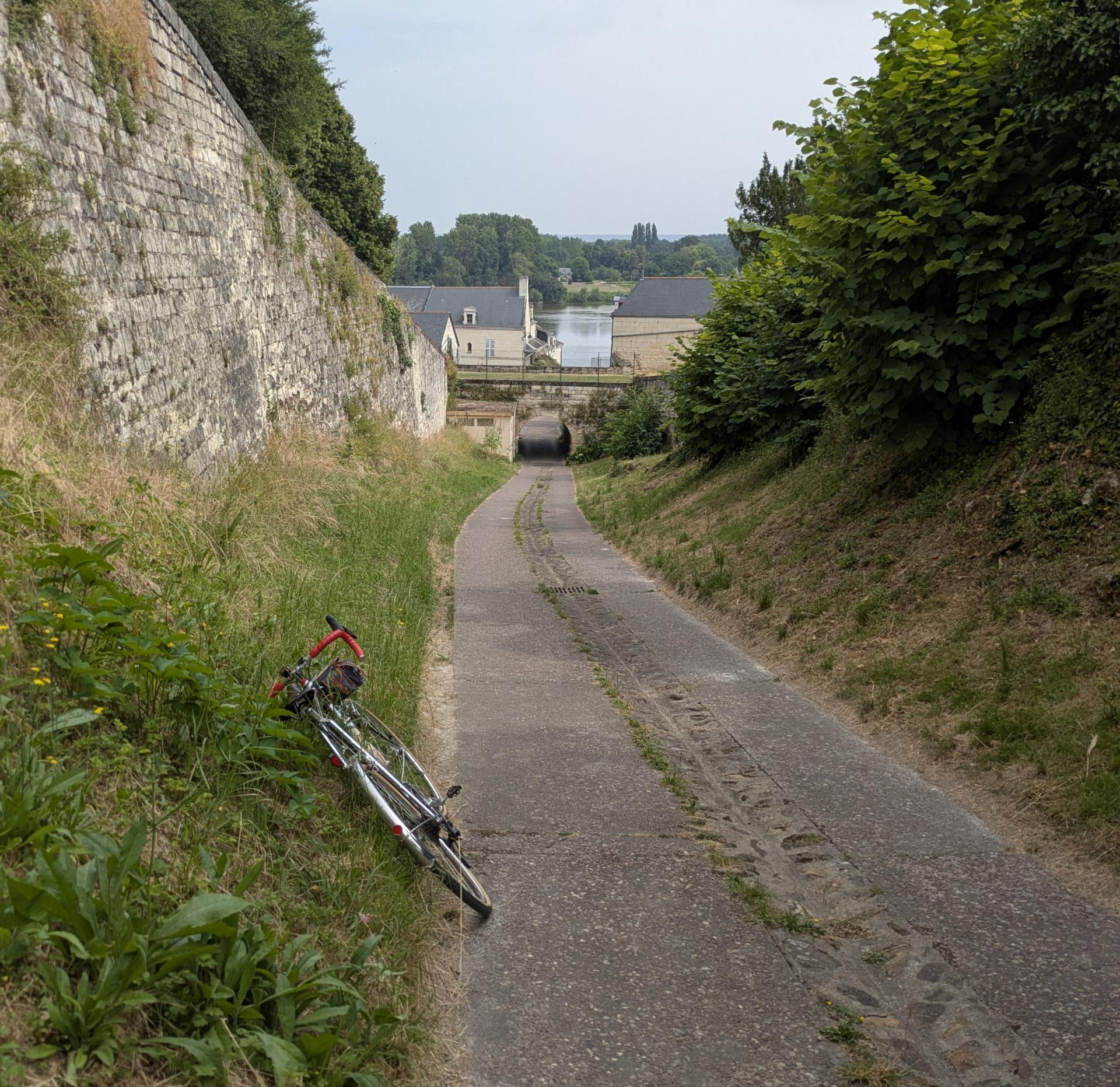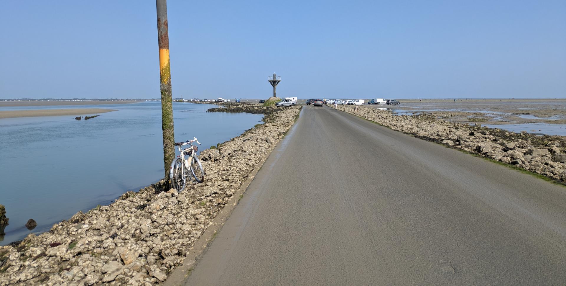 Mercredi 16 juillet 2025 : un peu d'ombre sur l'île de Chalonnes, c'est agréable :Dimanche 22 juin 2025 : je me dirige vers Candes Saint Martin (Indre et Loire) où l'U.C. Touraine organise, chaque année, une concentration, ce n'est pas un exercice qui attire les néo-cyclos, on en repère quand même, mais il y a aussi fort heureusement des randonneurs et des randonneuses convaincues ! ! En arrivant sur les hauteurs de Candes, au-dessus du confluent de la Vienne et de la Loire, je croise un couple de randonneurs expérimentés de mon club, je ferai une partie du retour avec eux, puis la fin seul sur le parcours de la Loire à vélo. Au retour de la concentration, photo en descendant vers la Vienne que l'on aperçoit au loin :Mardi 10 juin 2025 : c'est actuellement ma plus belle journée de cyclotourisme de l'année ! Je suis venu, à nouveau, sur l'île de Noirmoutier. Parti du continent, je suis entré sur l'île par le passage du Gois et revenu sur la terre ferme par le pont, après une superbe balade. J'y reviendrai sans doute car les paysages sont magnifiques et la circulation automobile du mois de juin assez paisible :