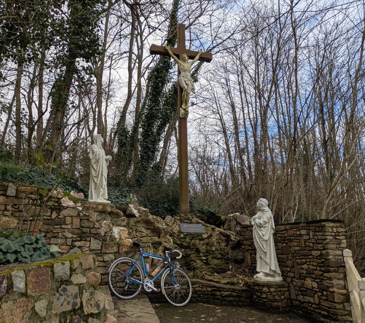 Jeudi 30 janvier 2025 : en rando jusqu'à Lourdes ? Non ! Il s'agit du calvaire de Montreuil sur Maine :Fait d'hiver : Lundi 27 janvier 2025 : au 23è kilomètre je reçois une belle averse qui va durer un quart d'heure ! Je suis refroidi au propre comme au figuré !