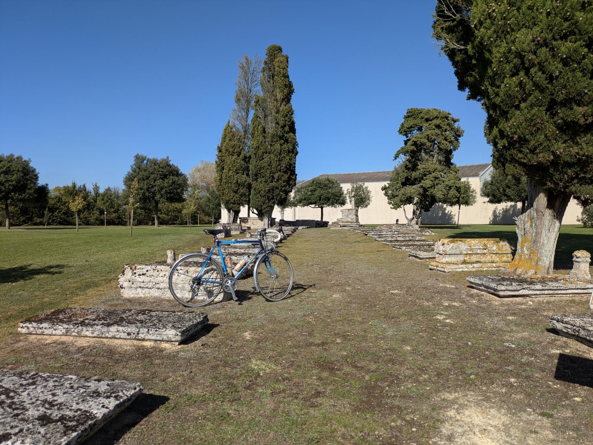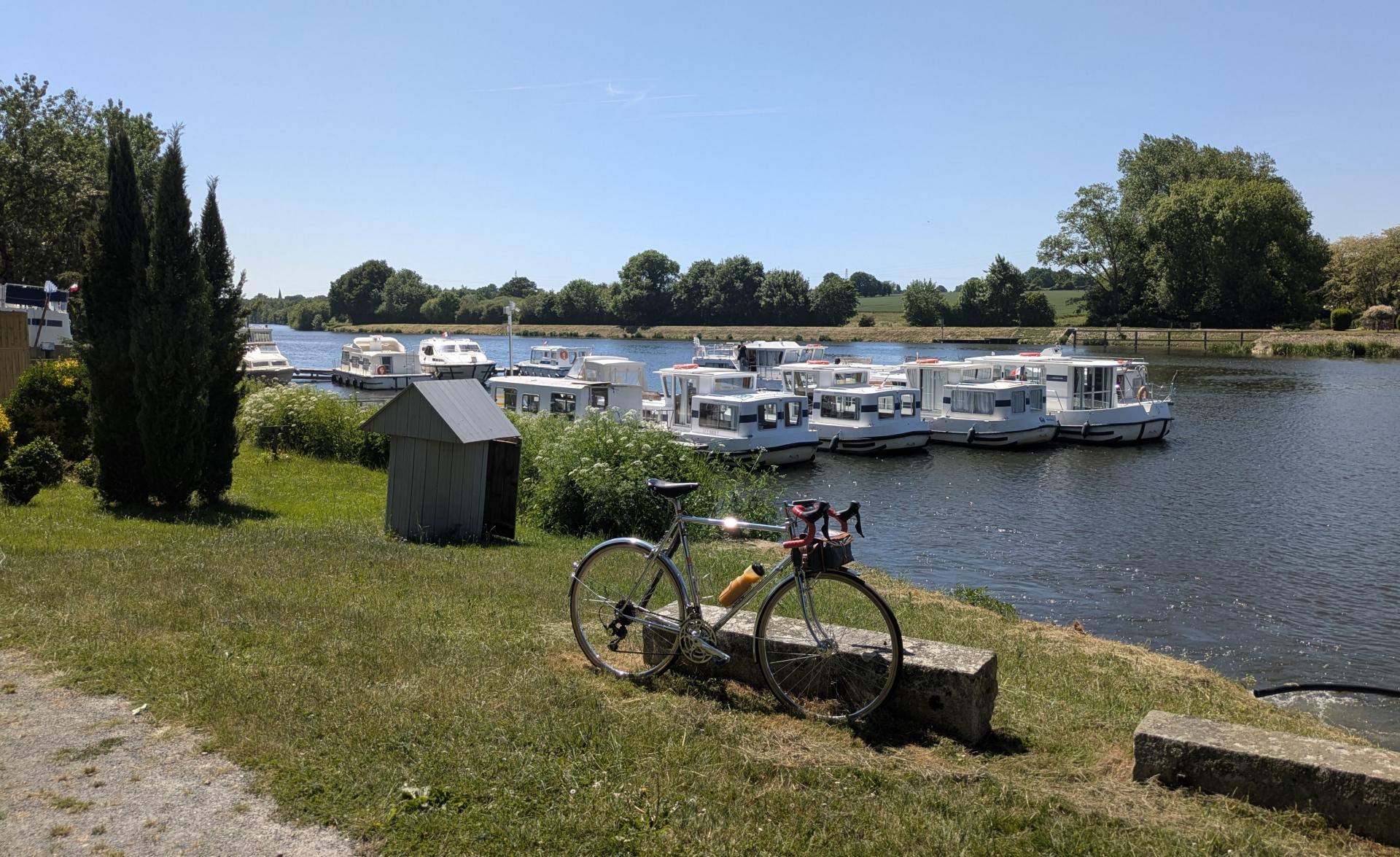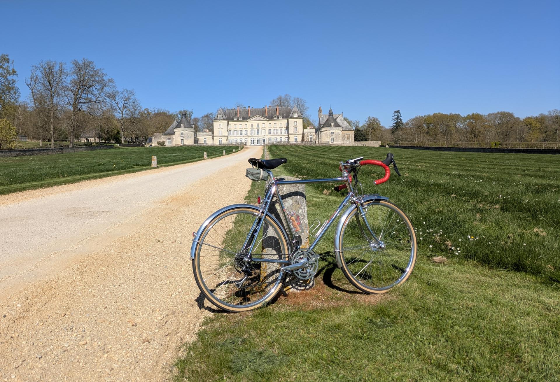 Vendredi 8 août 2025 : le parcours d'aujourd'hui allait à Châteaudun, donc un peu à l'écart de l'Orléanais. Sur cette photo prise au passage à Verdes, il y a quatre vélos, reconnaissez-vous ma randonneuse ? :