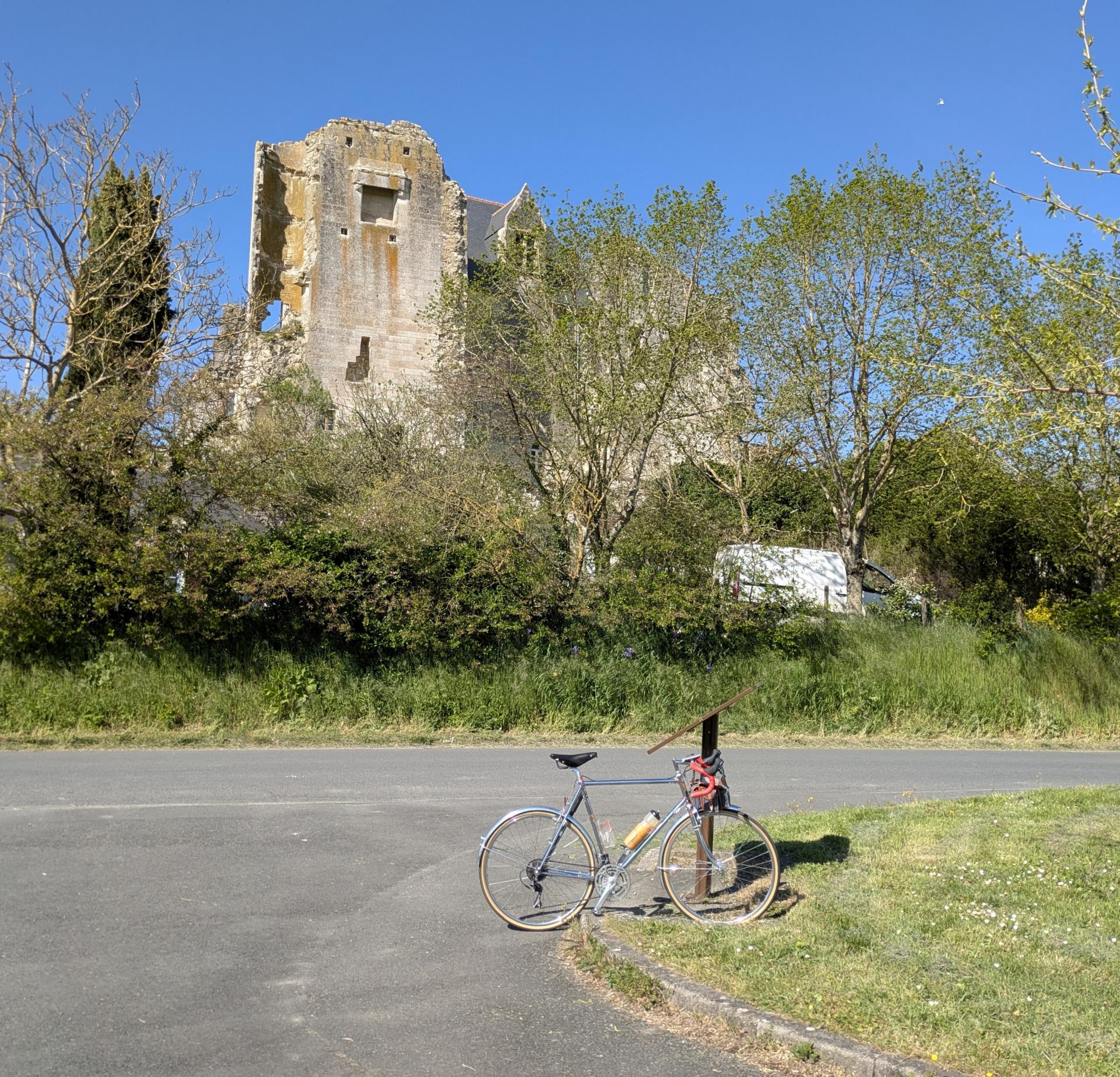 Vendredi 11 avril 2025 : + 22°C ! ! Cette superbe météo d'avril me donne envie d'aller faire un tour ... Parti des rives de la Loire je vais rejoindre les bords de la Vienne que je franchis à Chinon, où je prends un café :Puis j'affronte le vent d'est qui semble vouloir freiner mon avancée éblouissante. Mais j'arrive enfin à Crissay sur Manse où je suis un peu déçu : quelqu'un est déjà passé et a démoli le château qui est maintenant en ruines et inaccessible. Je prends quand même une photo :